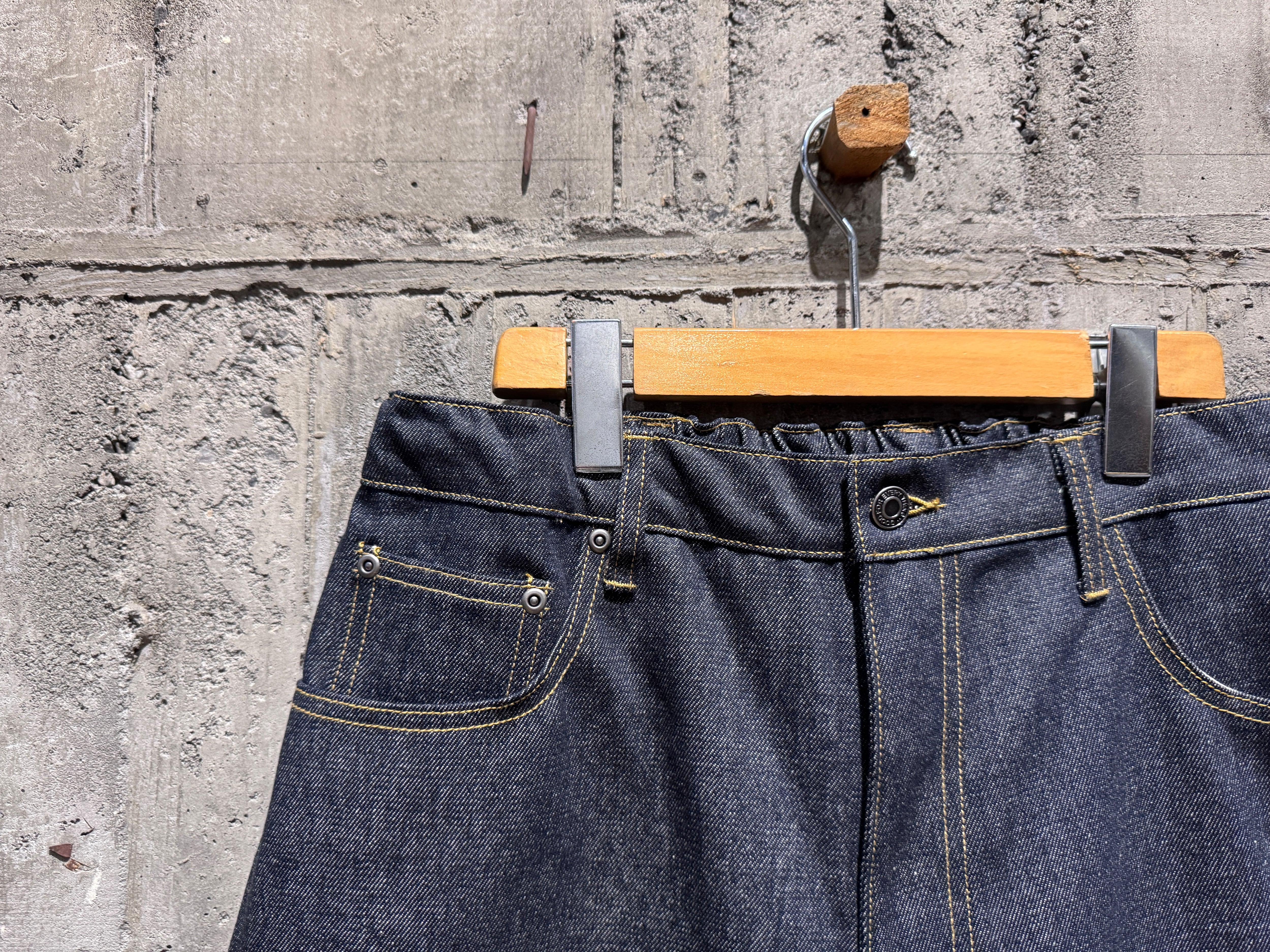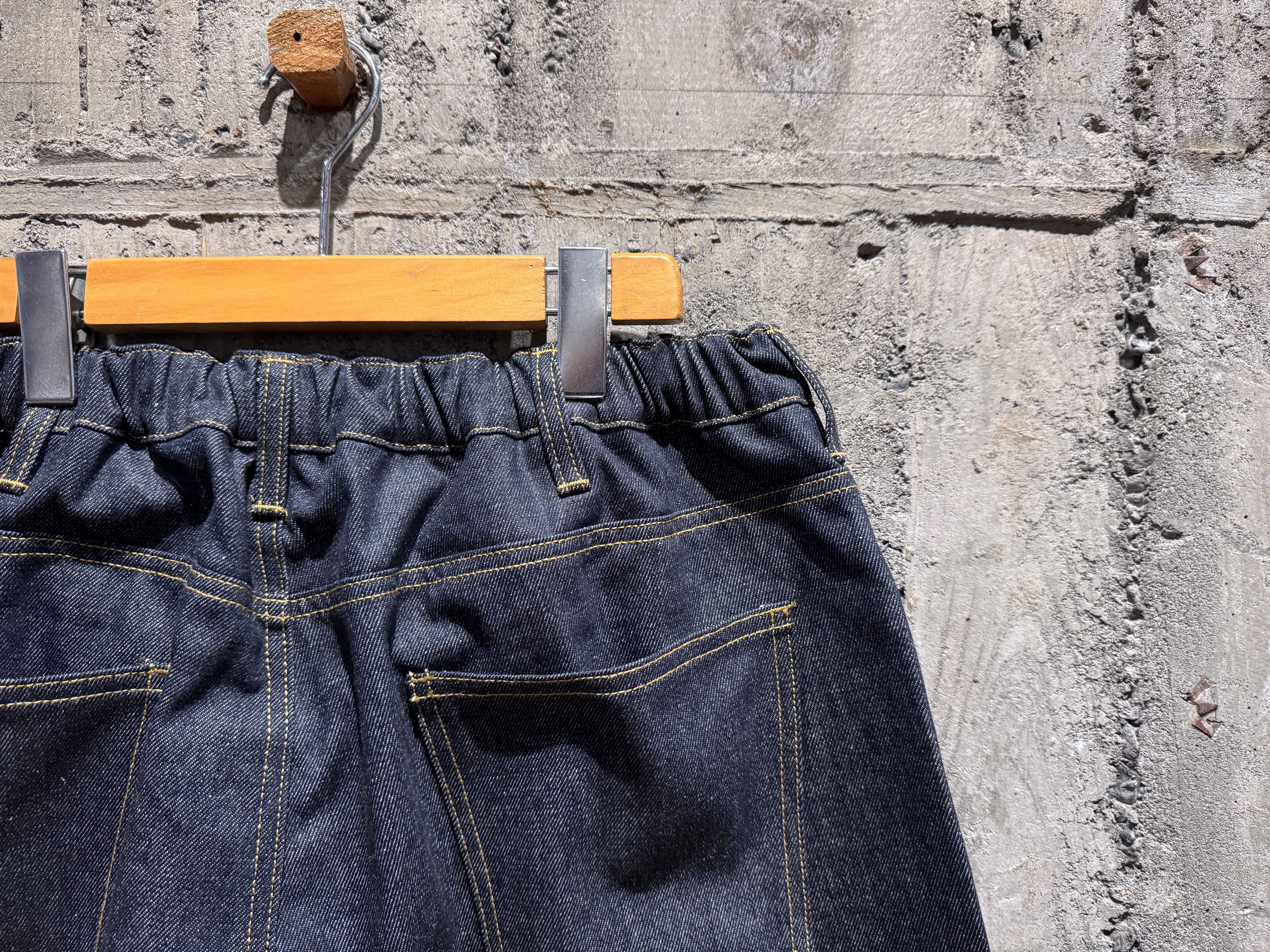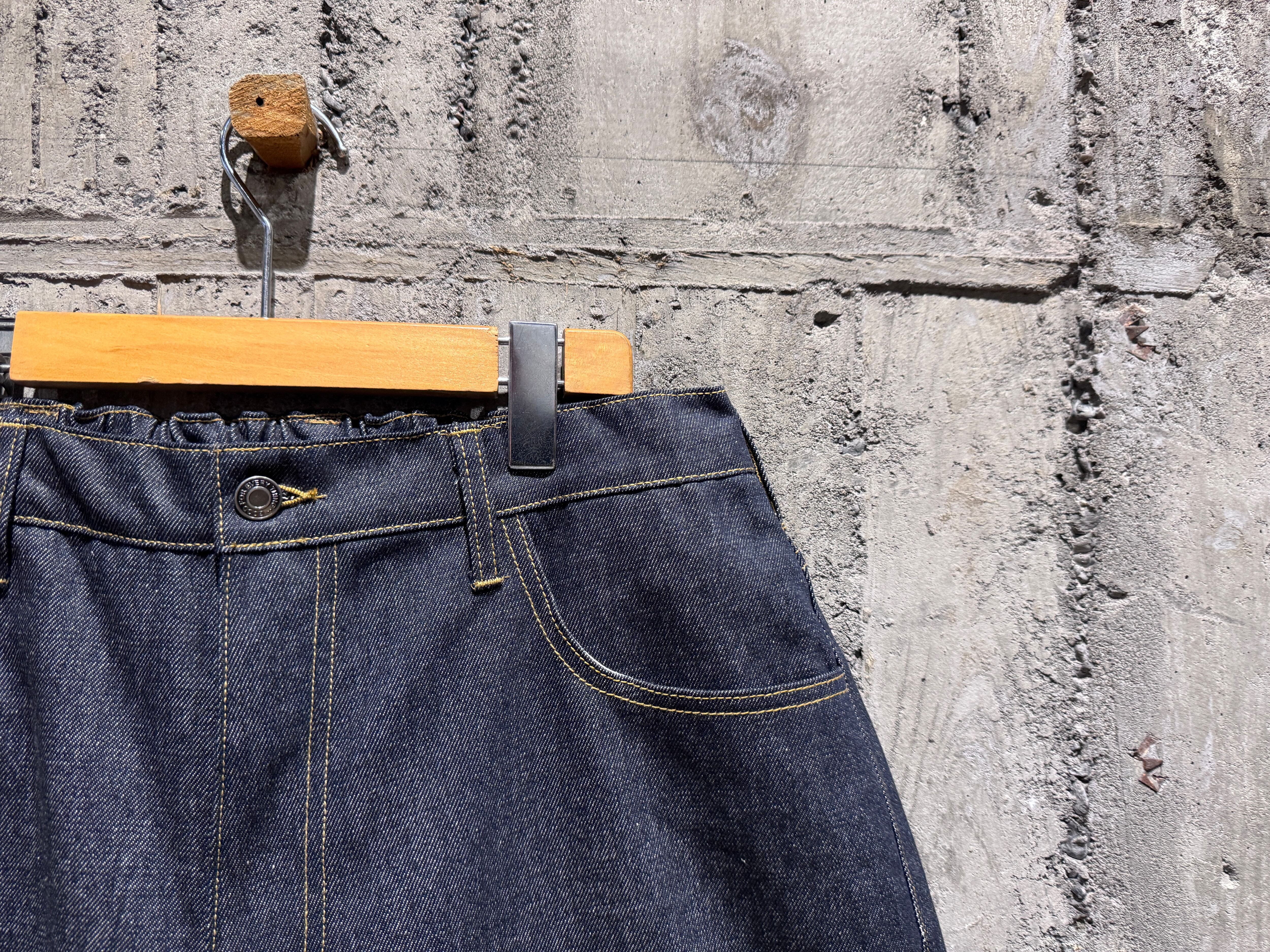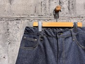 程よい11オンス、ワイドなシルエット。ウエストはイージーパンツ仕様でストレスフリーです。