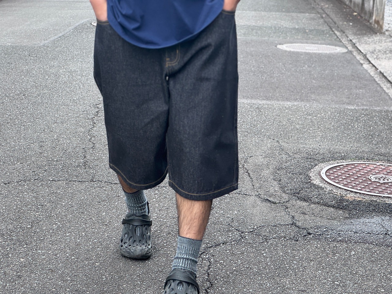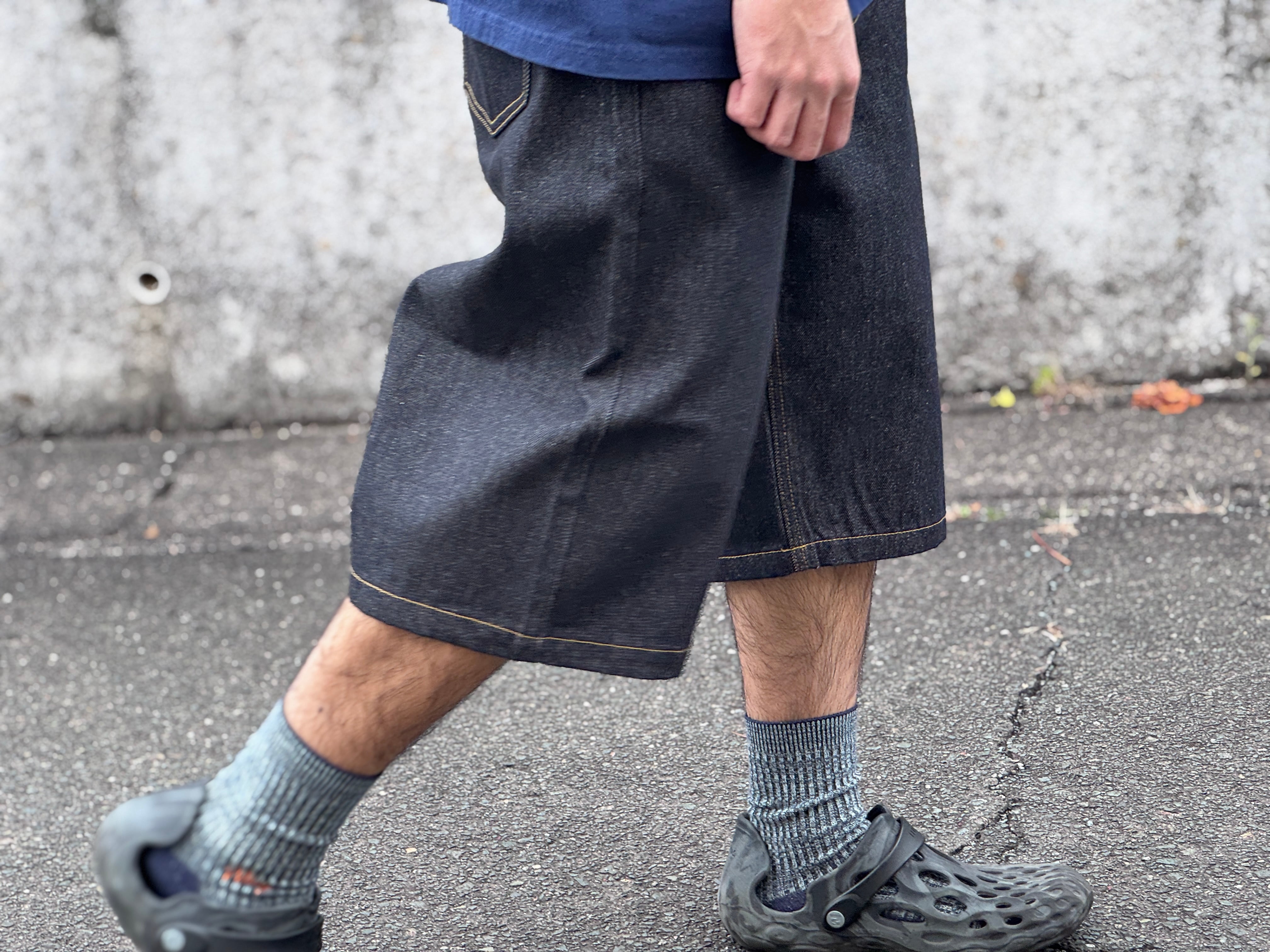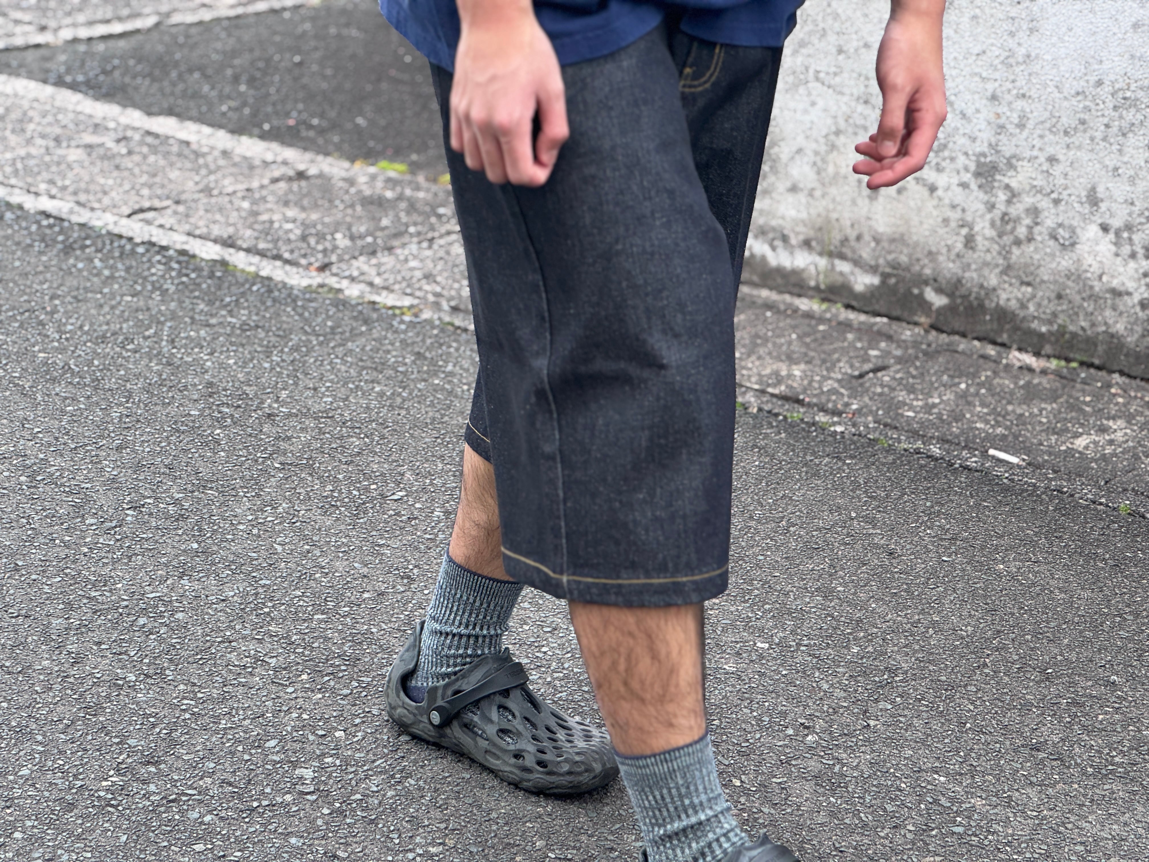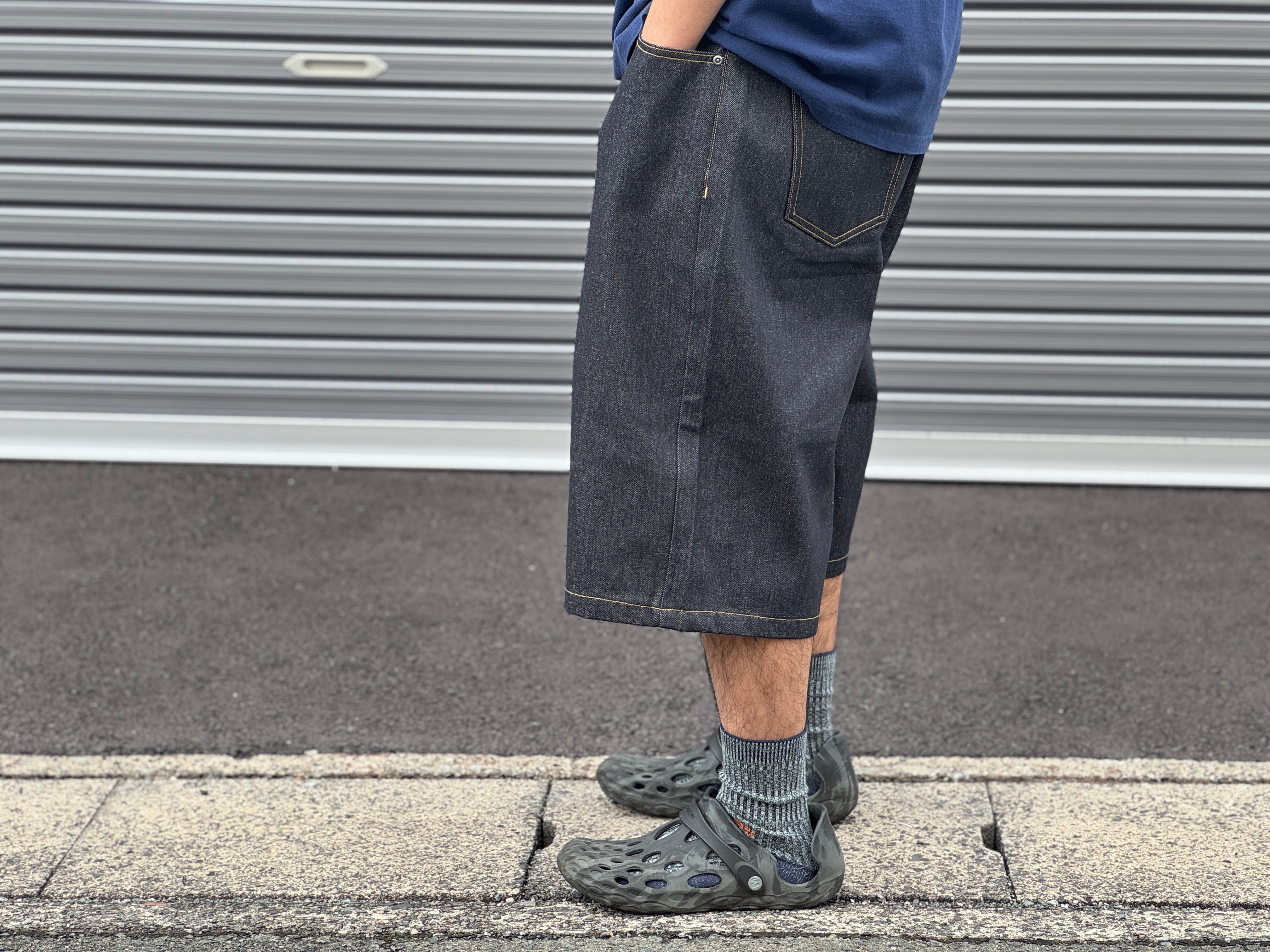 ここ1.2年で新たにスポットが当たったデニムの膝下中途半端な丈感のショーツ。