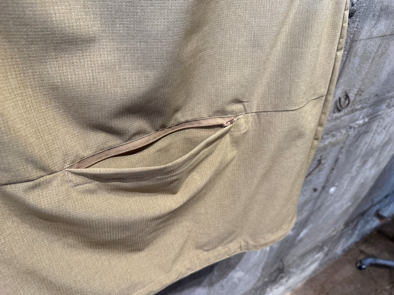 w-zip仕様、両サイド裾にコードを配してあるのでシルエットを変えることが出来ます。腰部分にはポケットも配してあります。