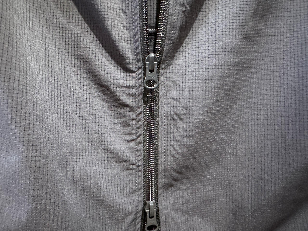 リップストップのような3mm程度のドット柄がエンボス(型押し)加工された、ポリエステルなどのマイクロファイバー生地。