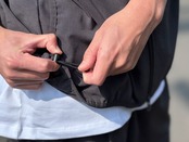 w-zip仕様、両サイド裾にコードを配してあるのでシルエットを変えることが出来ます。腰部分にはポケットも配してあります。