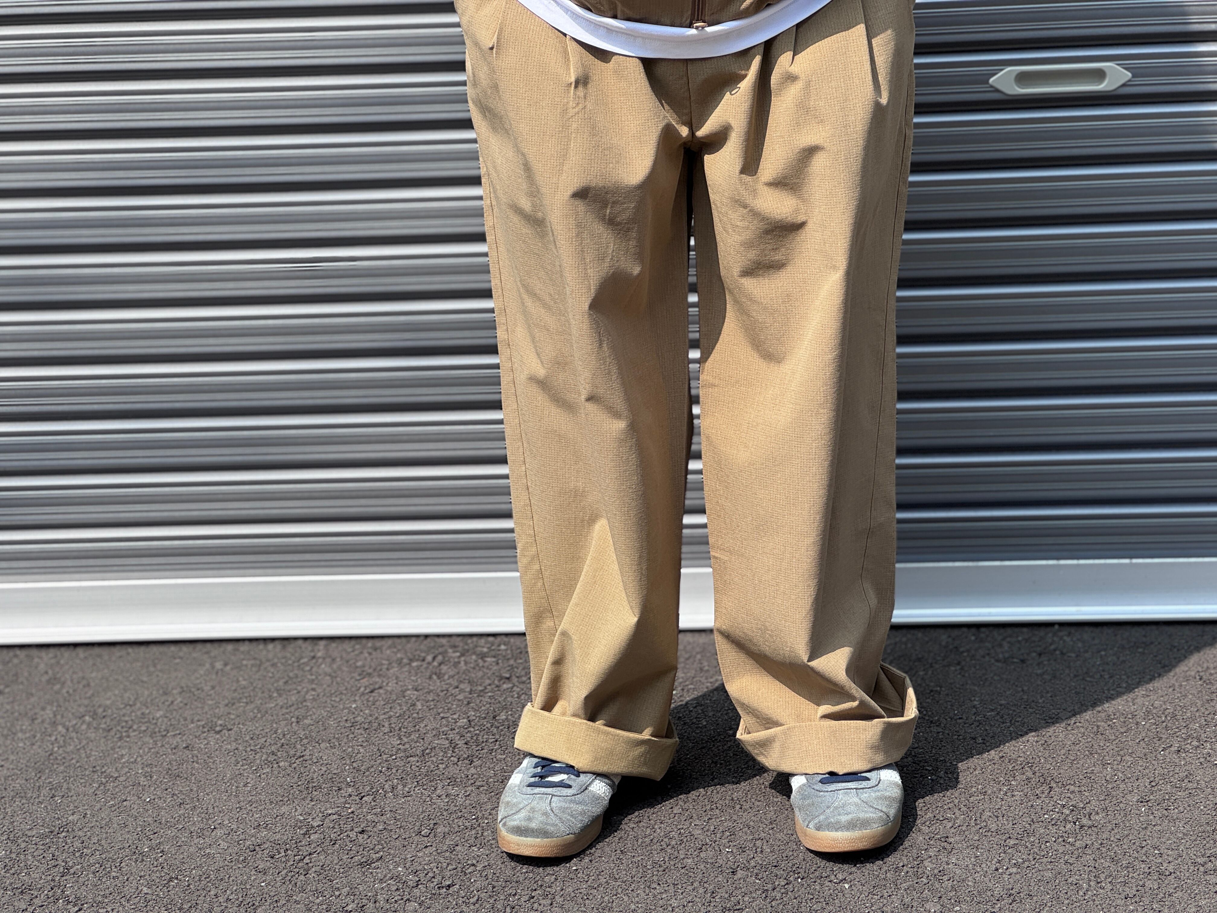 右腰部分にはDカンが配してあり、2タック仕様のワイドテーパードシルエット。