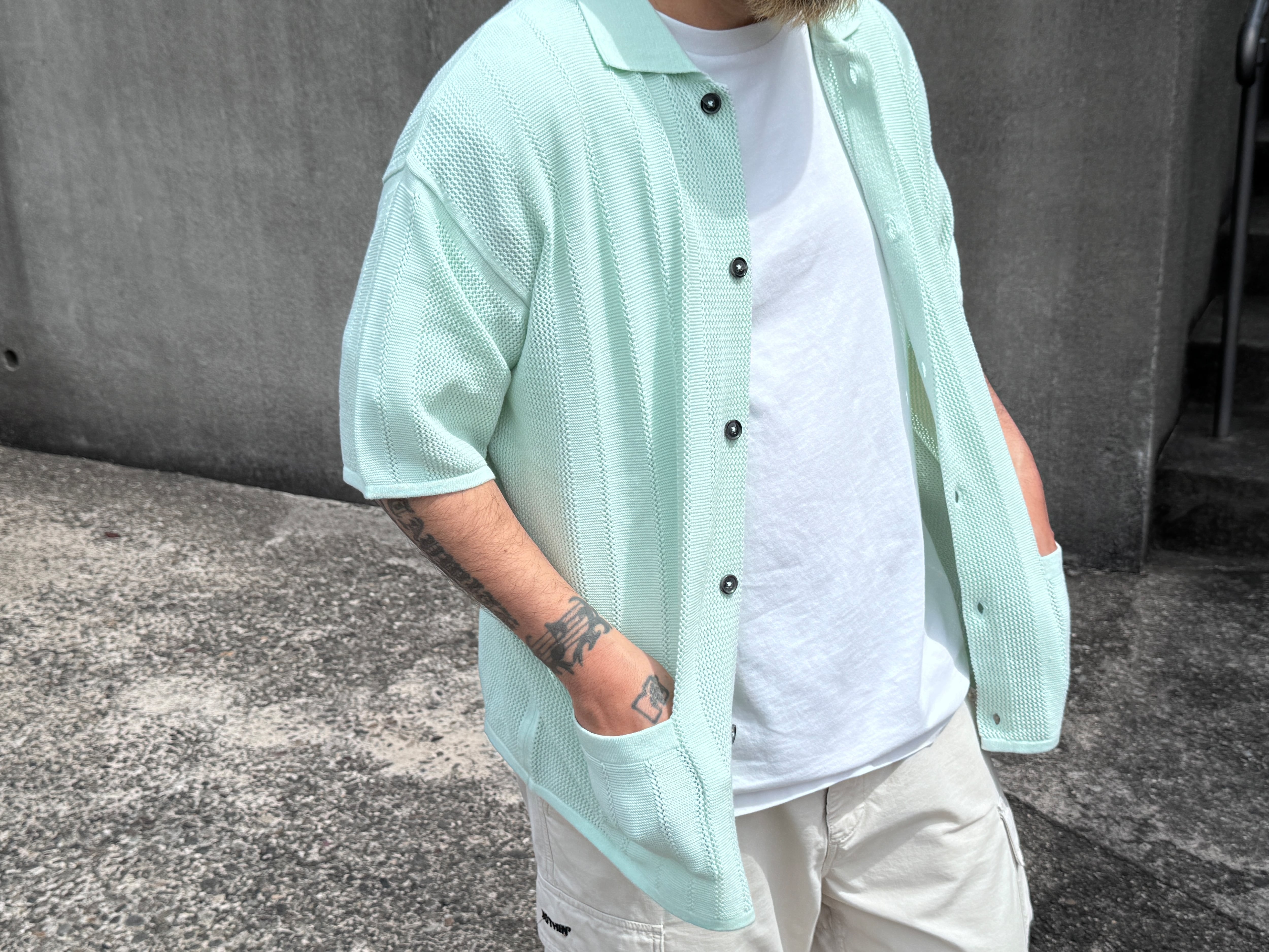 所謂なポロシャツ、所謂なシャツ、所謂なサマーニット、所謂なカーディガン、、どのカテゴリーにも属さない夏の羽織です。