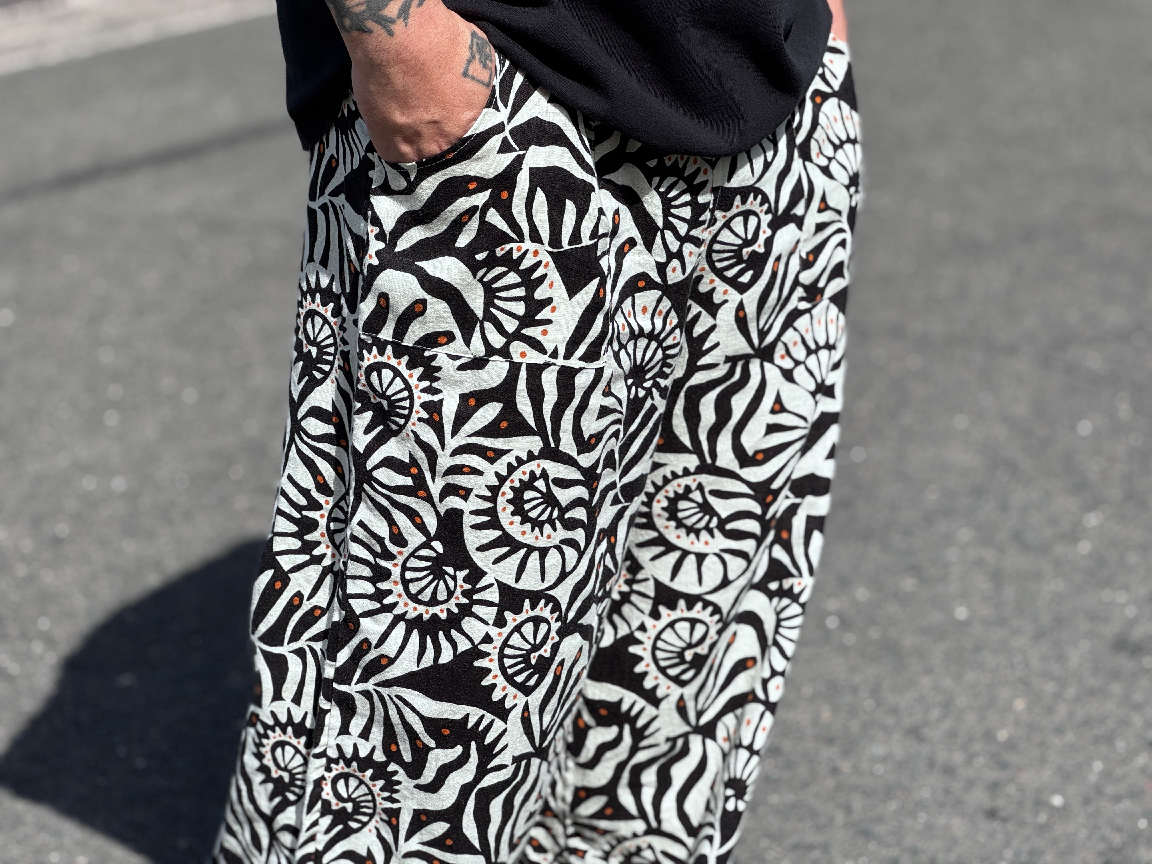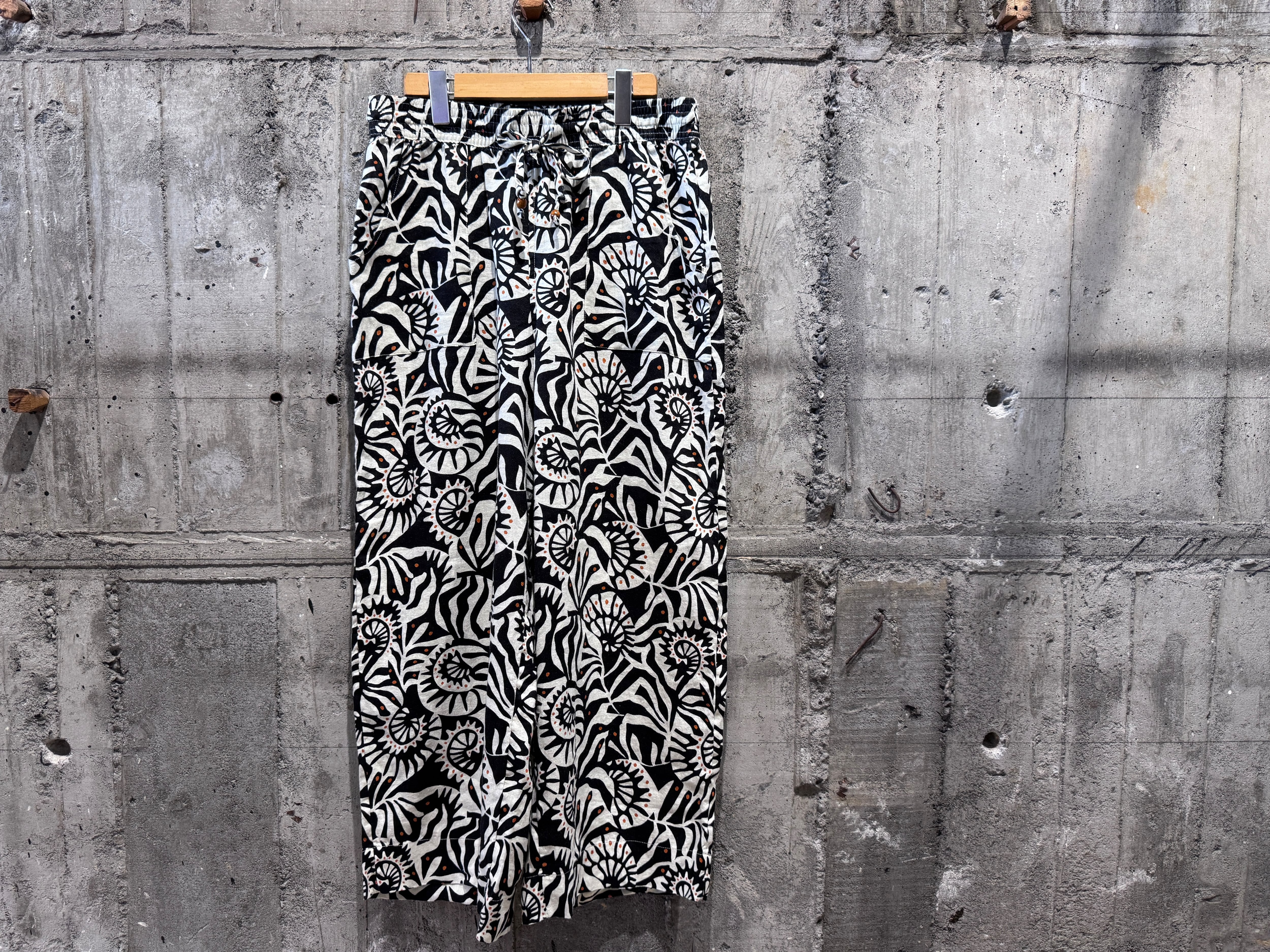Design pattern linen wide easy pants(USED)