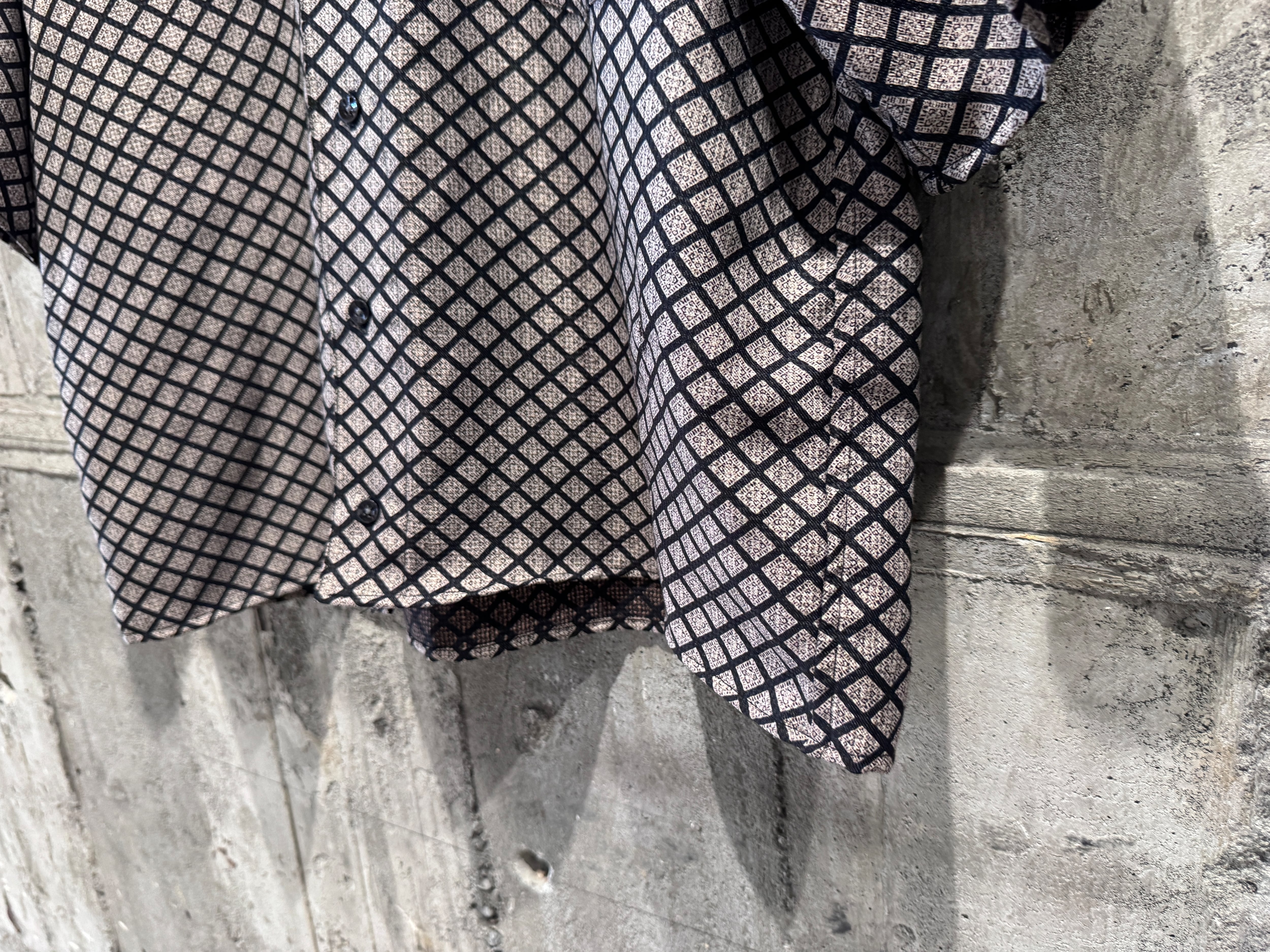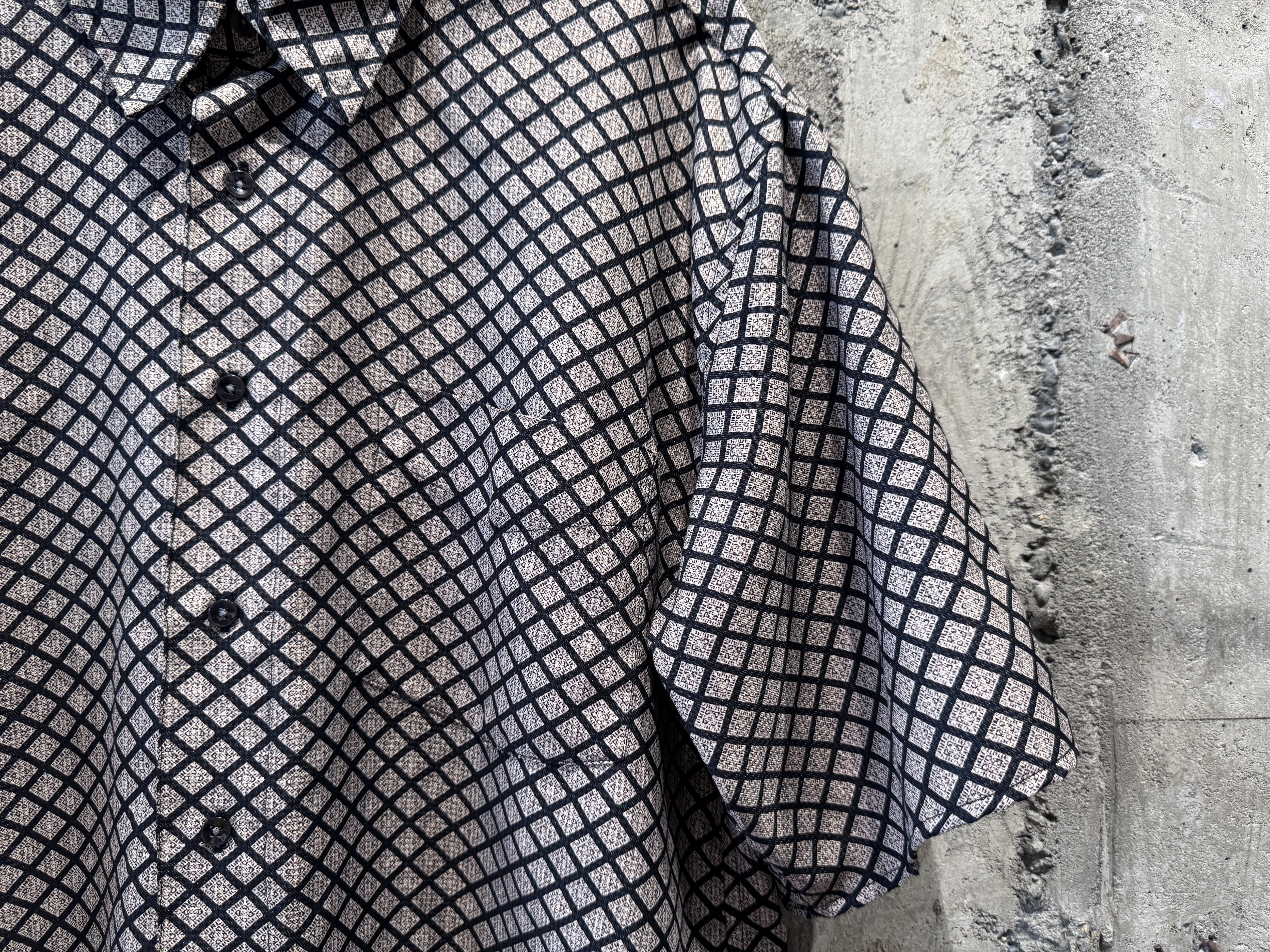 格子状のグラフィックが特徴的なデザインパターンシャツ。