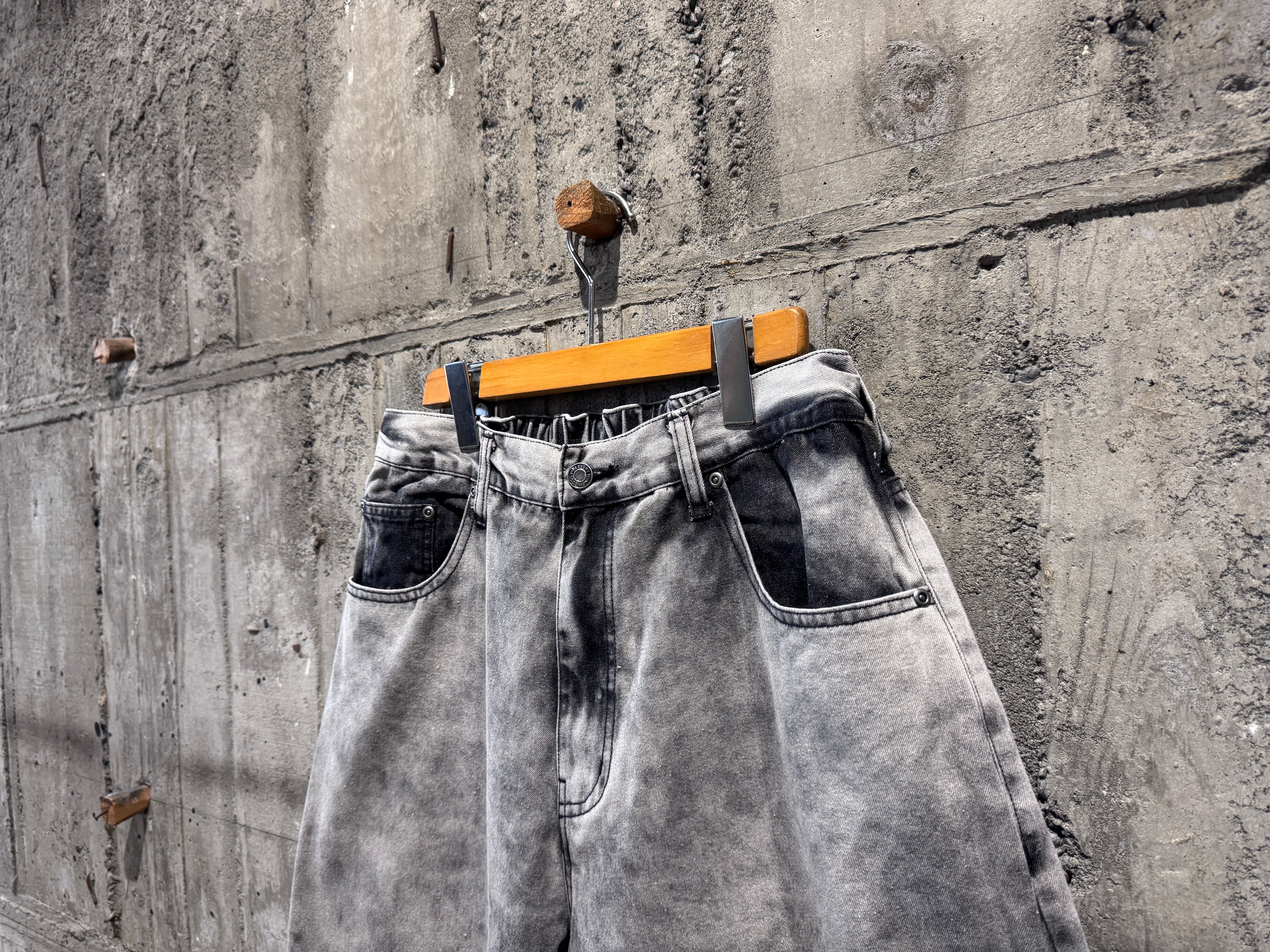 程よい11オンス、ワイドなシルエット。ウエストはイージーパンツ仕様でストレスフリーです。