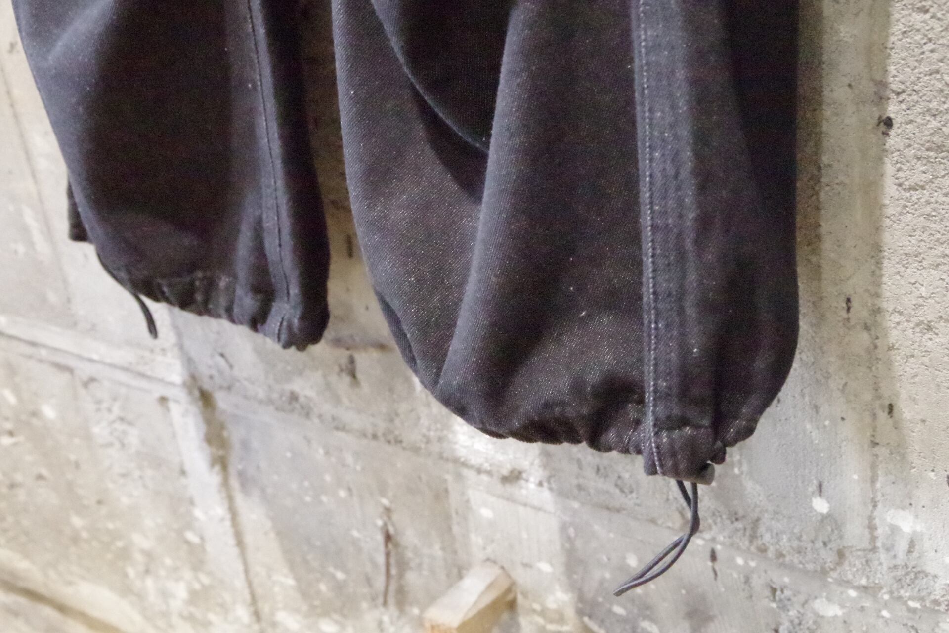 膝部分のアクションプリーツ、裾のドローコードも配してあり様々なシルエットによりスタイリングが楽しめるitemです。