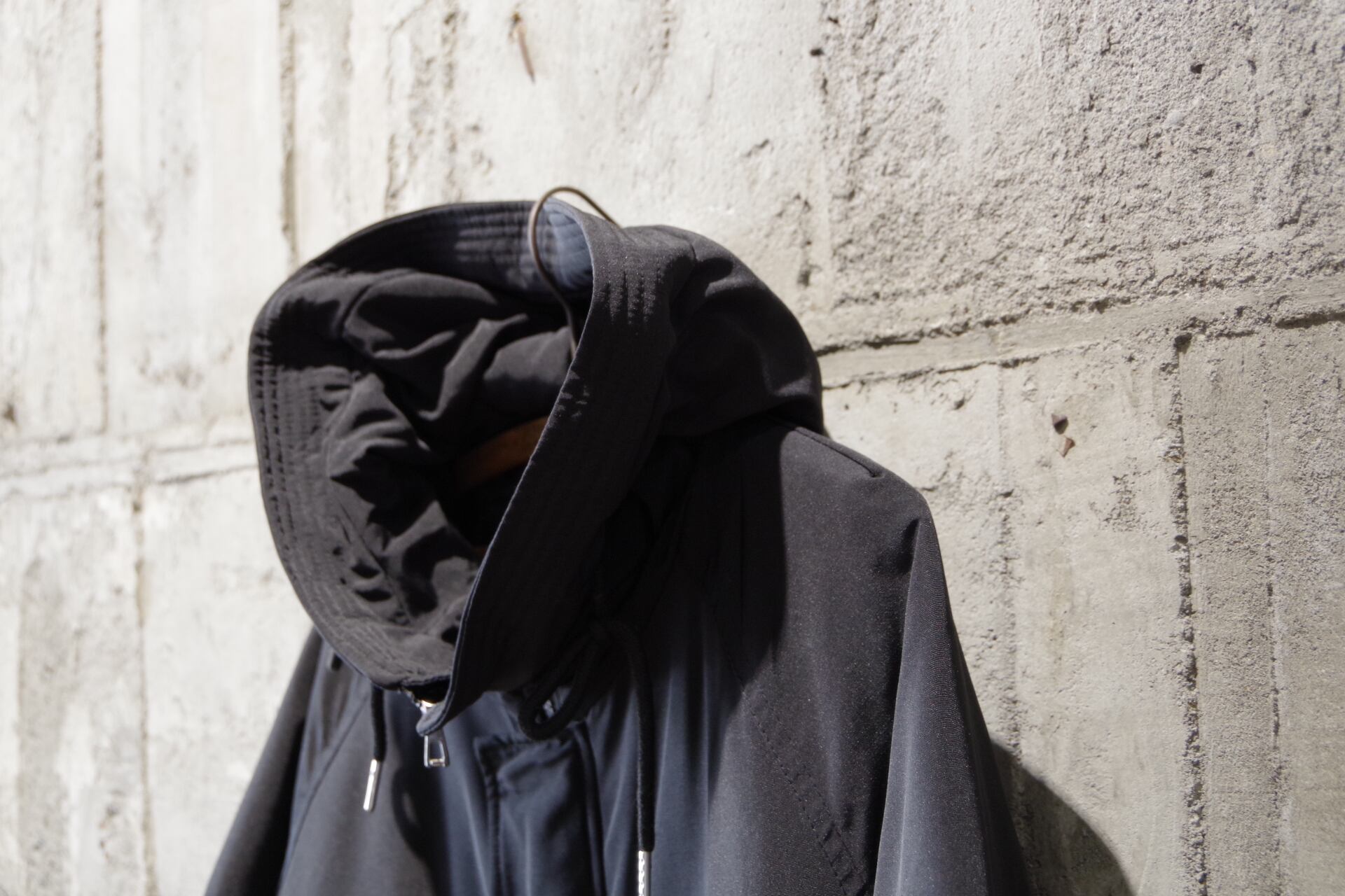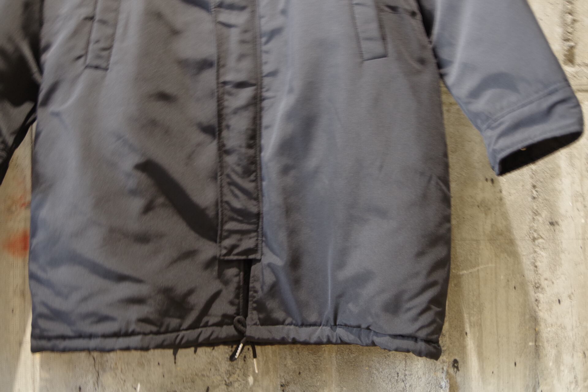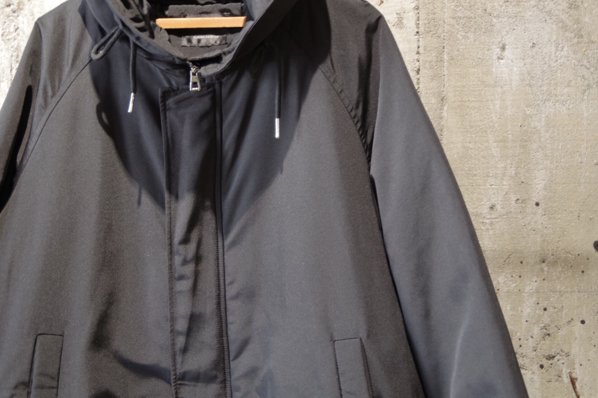 ハリのあるナイロン生地のコート。