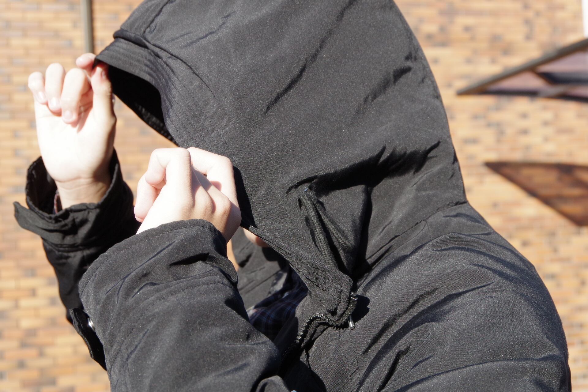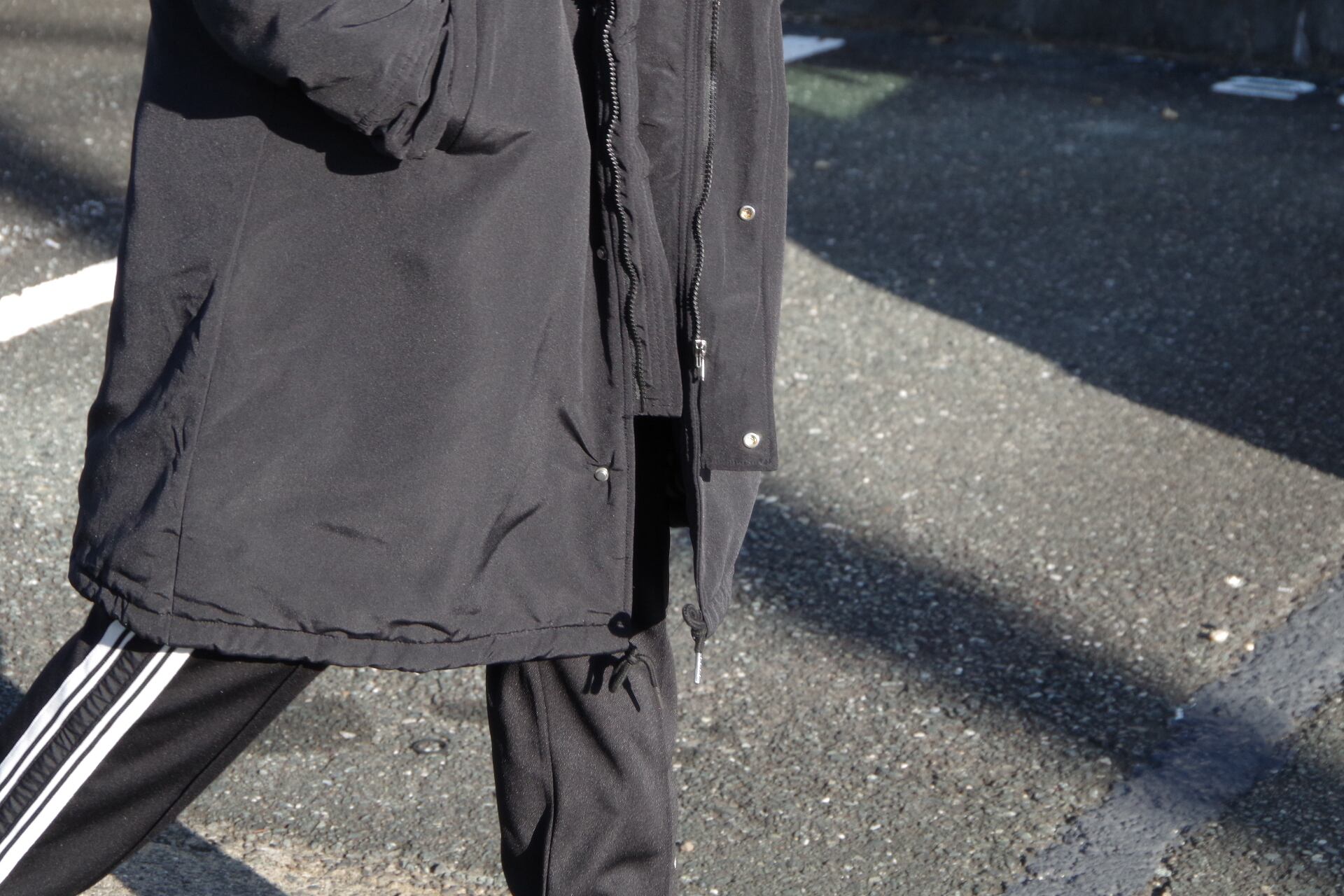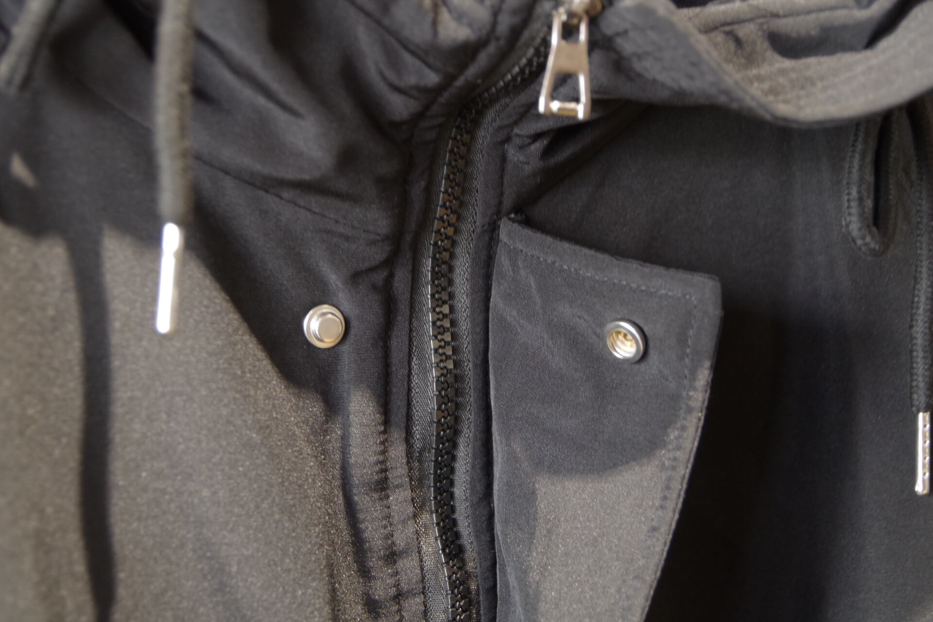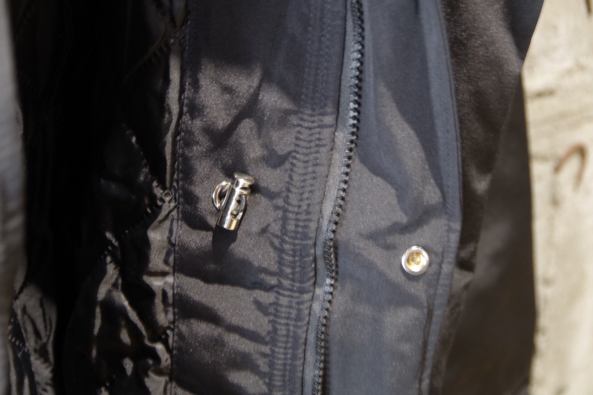ハリのあるナイロン生地のコート。