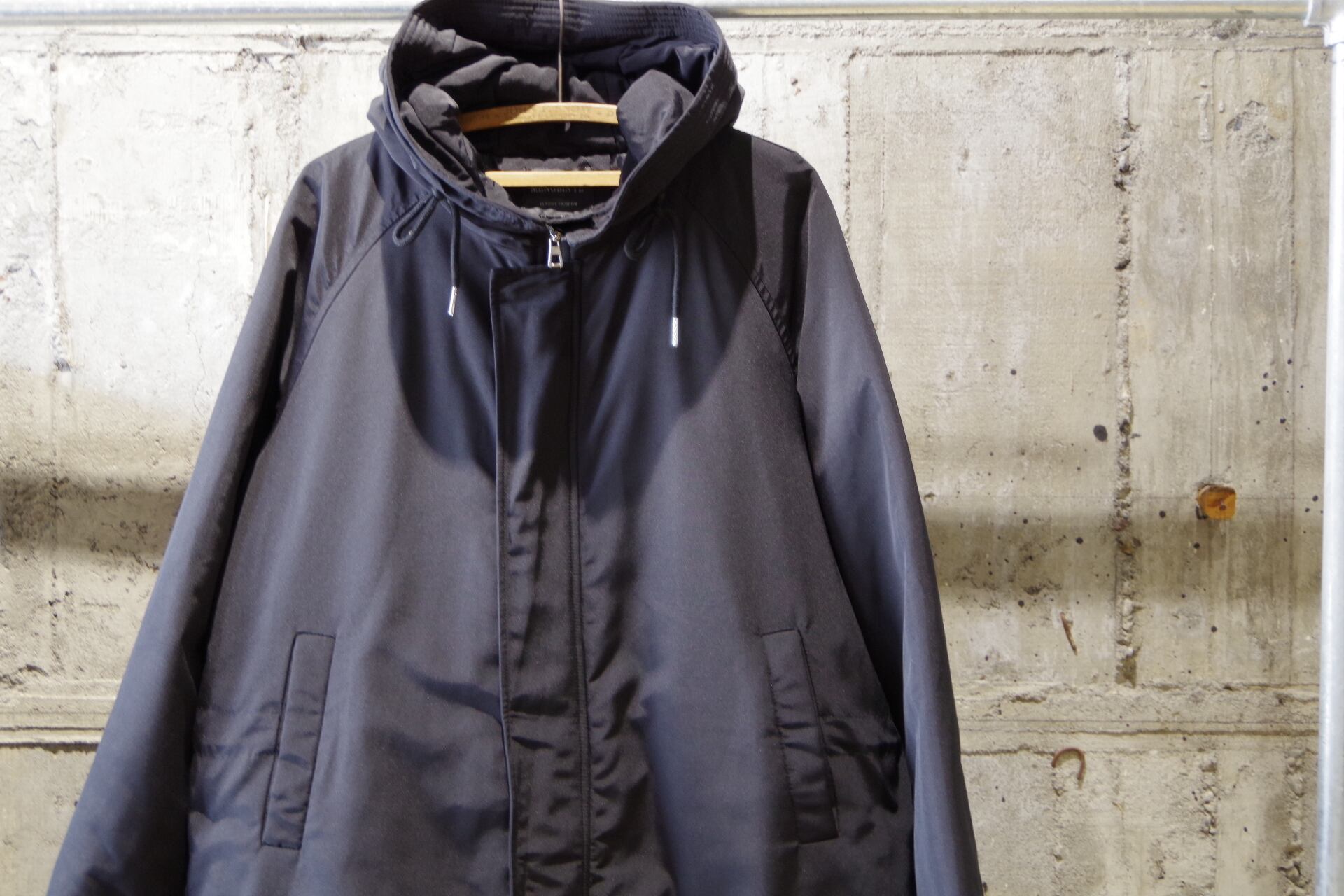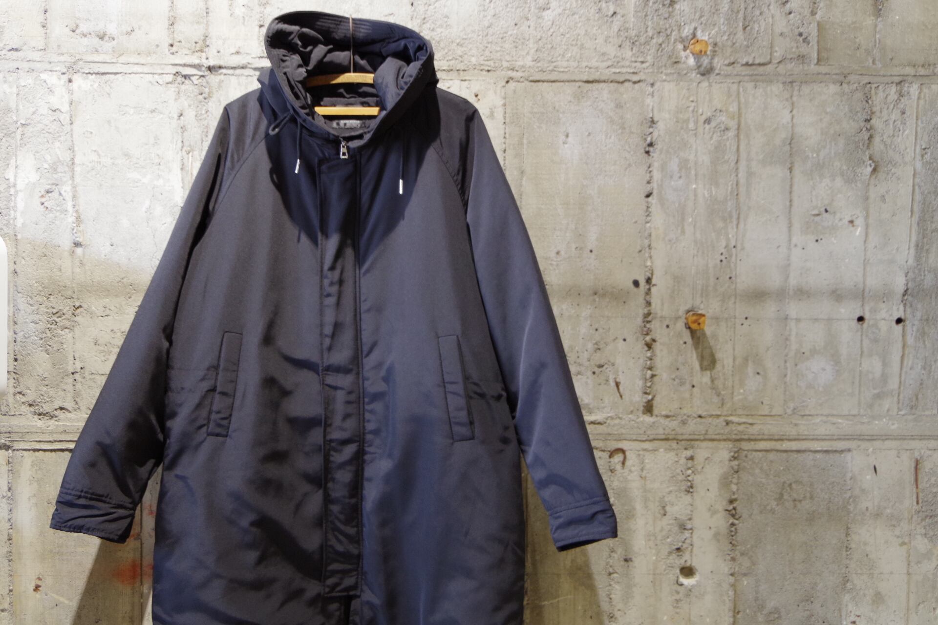 アーバンミリタリーな雰囲気のモッズコートデザイン。ラグランスリーブ仕様、ガバッと羽織れるワイドなシルエットで腹部・裾のコードでシルエット調節可能。