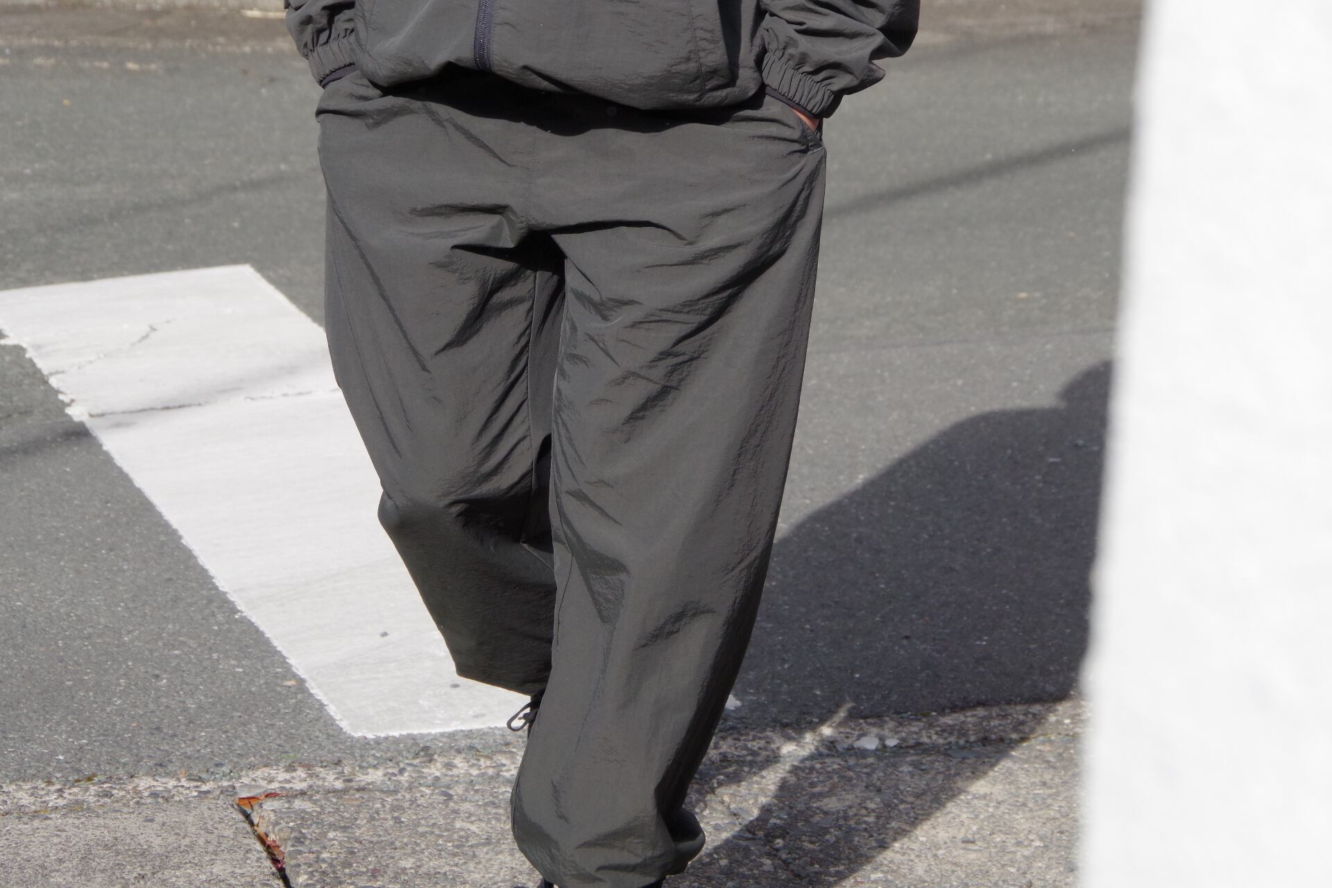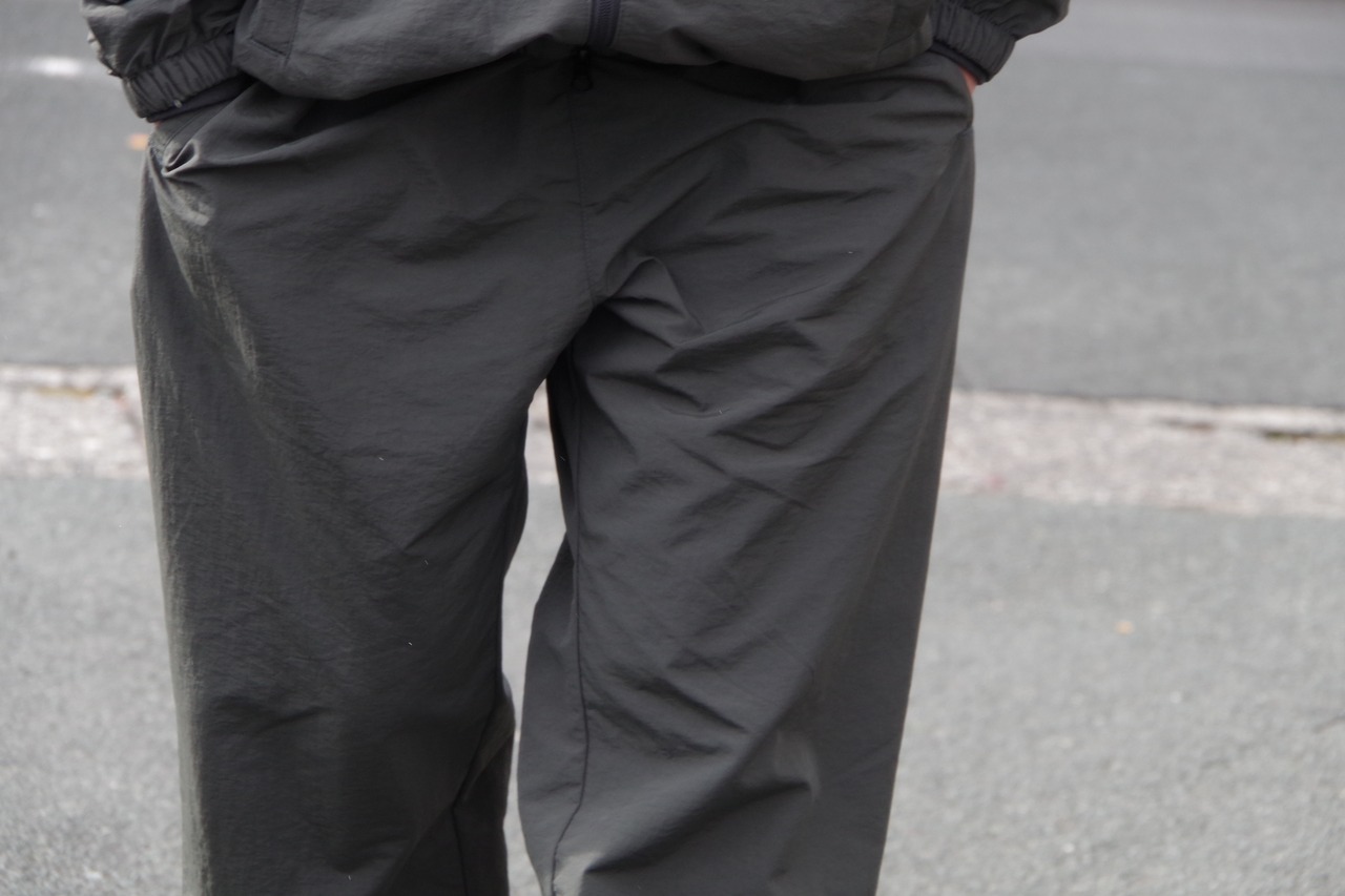 ありそうでない絶妙なコチラ。ナイロン特有のタフで軽やかな生地をシワ加工によりやわらかくコットンのような質感にしこなれた雰囲気のナイロンパンツです。